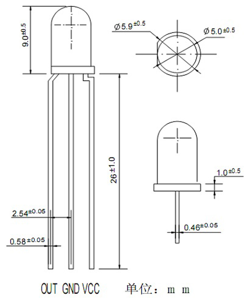 Cylindrical appearance, top receiver, built-in CMOSIC, strong product compatibility, widely used in infrared remote control receiving toys, car audio, TV,speaker,portable players, etc.